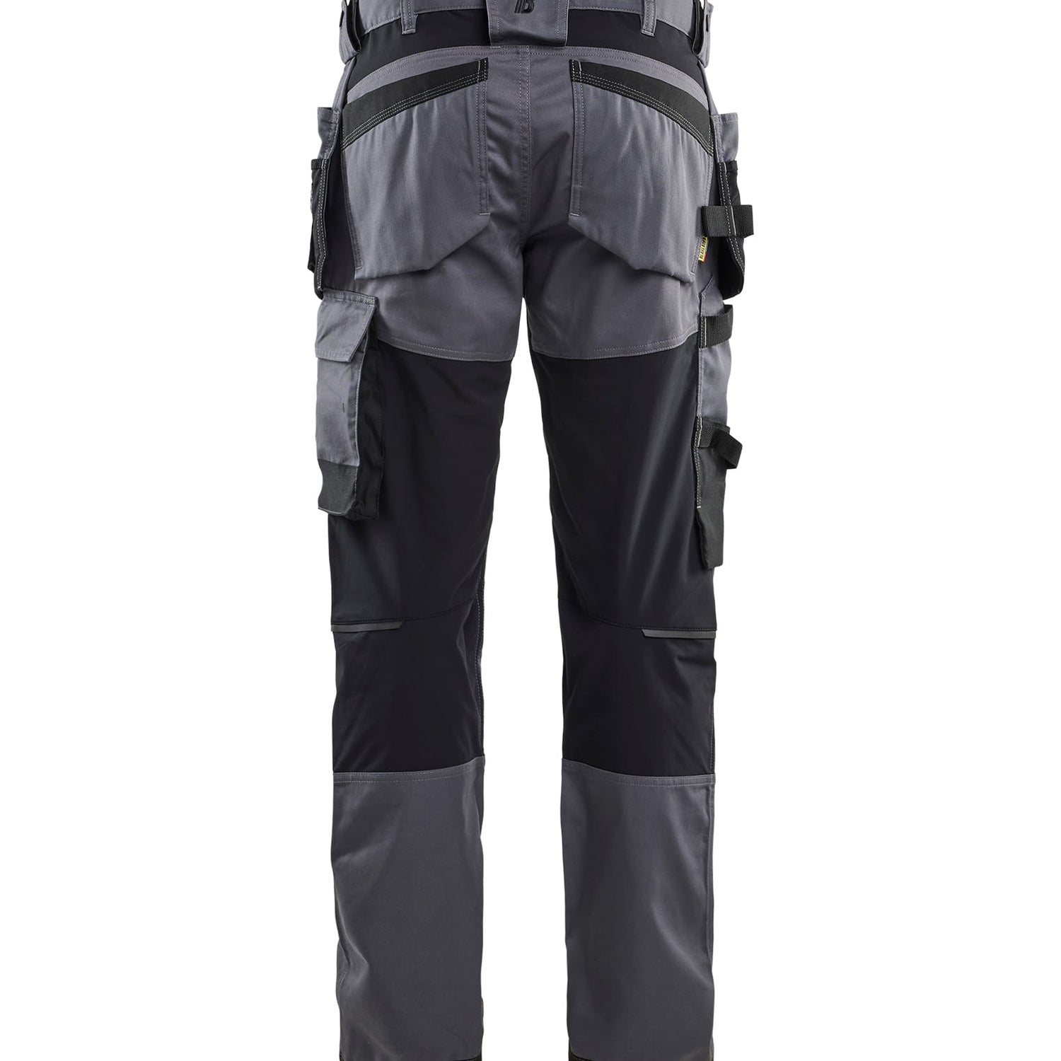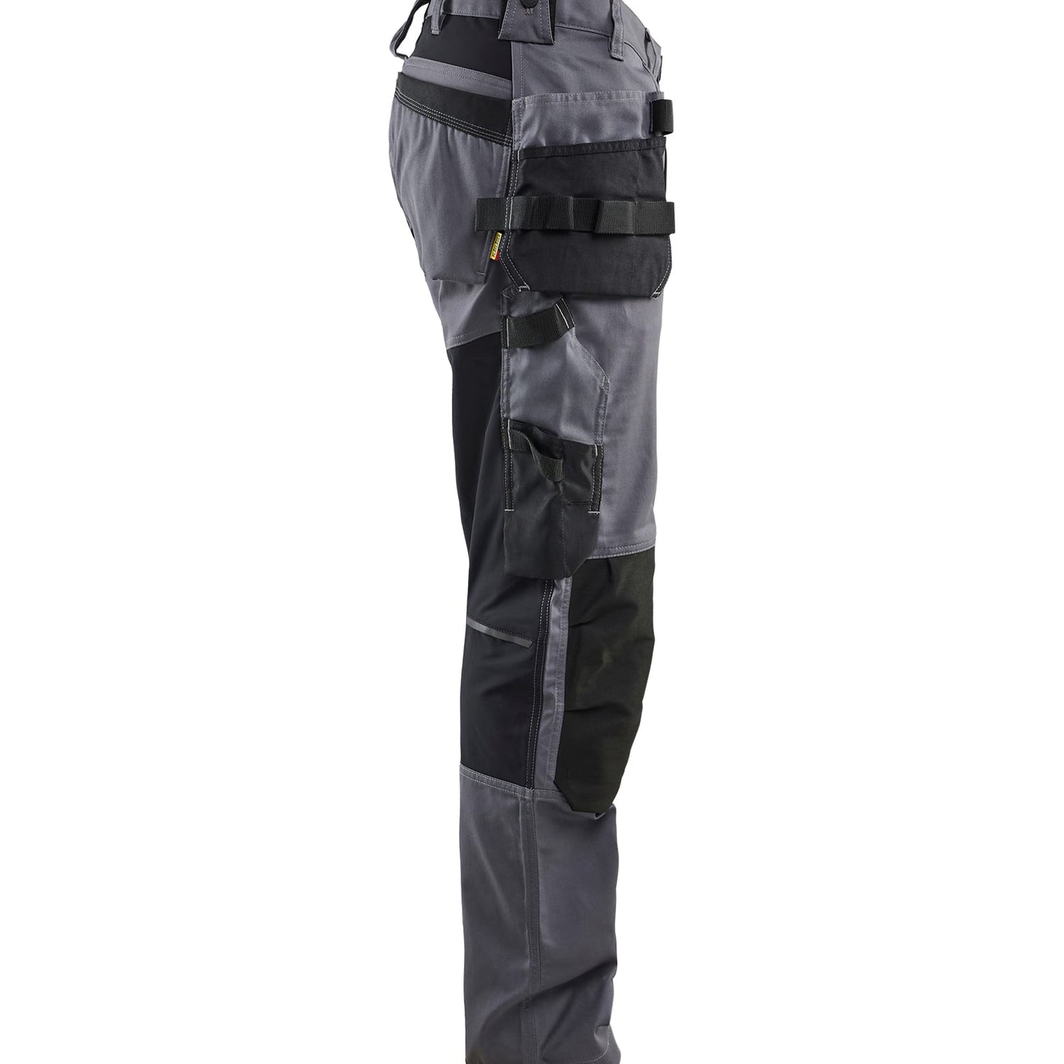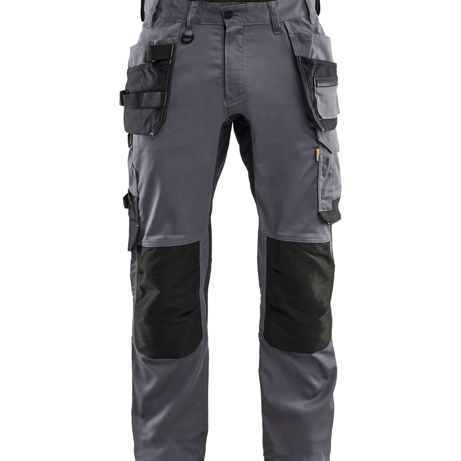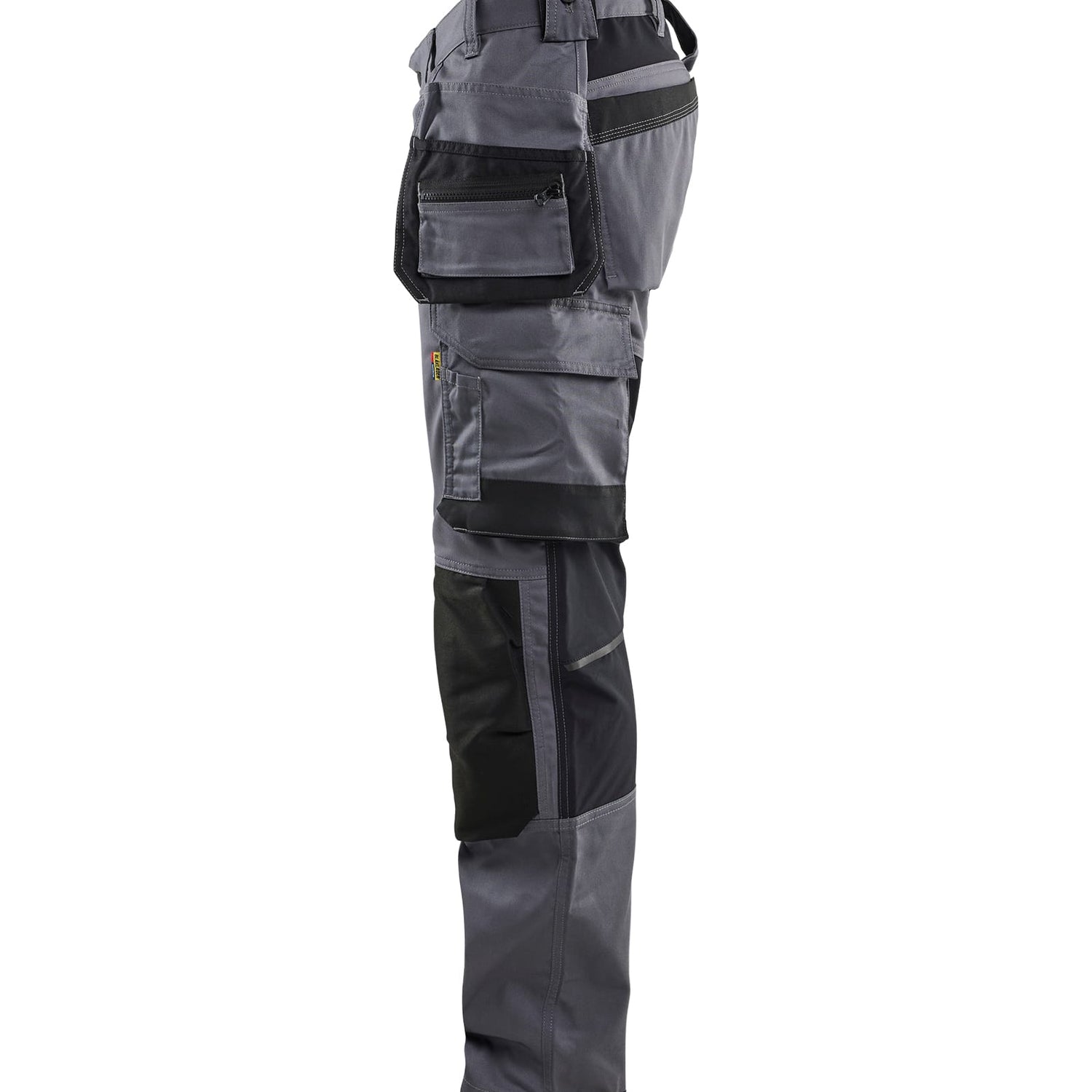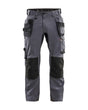 The trousers have fixed tool pockets, bottom-fed knee protector pockets with CORDURA®-stretch, practical pockets with reinforcement, ruler pocket, front pockets and loop for hammer holder on both the left and right sides.