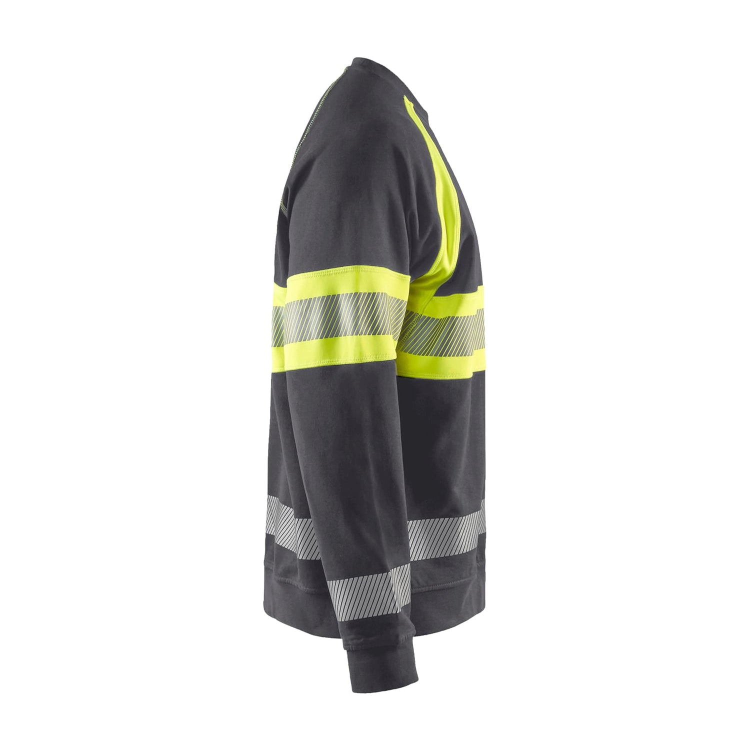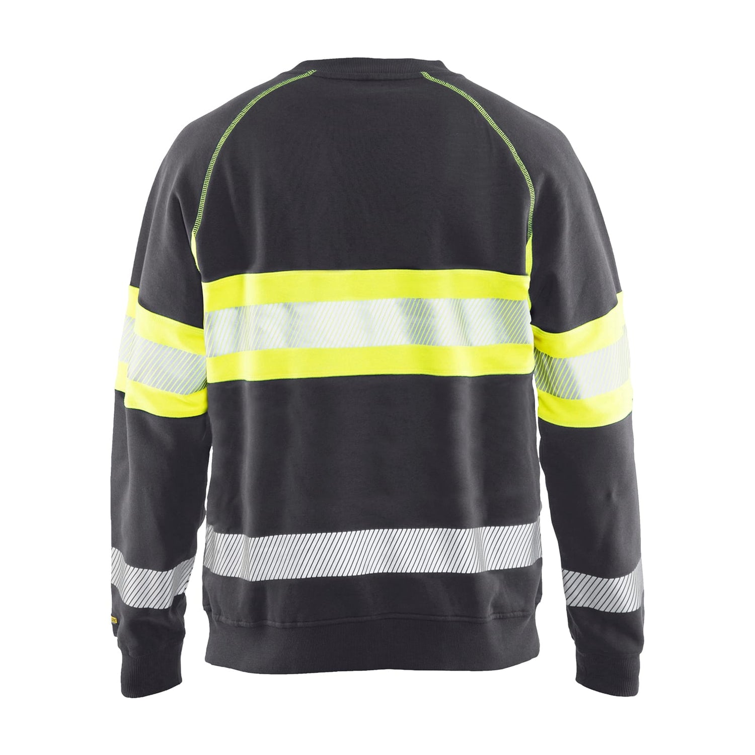Soft and comfortable high visibility sweater with cut transfer reflectors for optimal ability to move and breathability. The dark area of the sweater consists of 100% cotton and the high vis area of 100% polyester. Round neck and ribbed hem and cuffs for better comfort.
